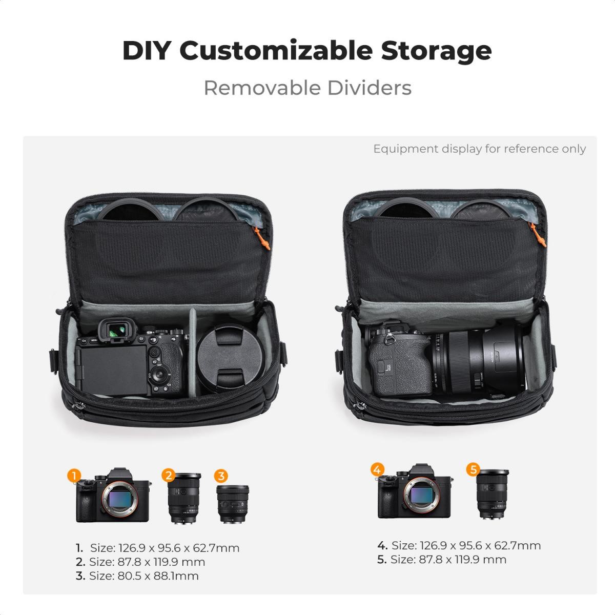 Široki dvosmjerni patentni zatvarači omogućuju brz i jednostavan pristup fotoaparatu i objektivima, što je savršeno za brzo vađenje opreme za akcijsku i uličnu fotografiju.