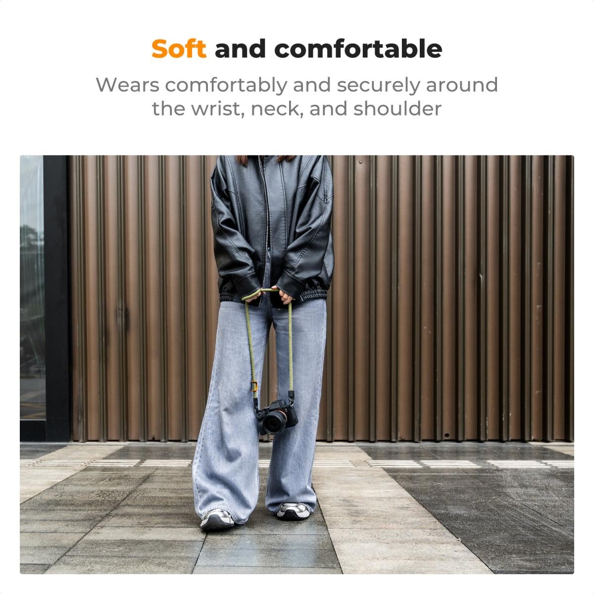 Lagan i mekan remen osigurava udobno nošenje oko vrata čak i tijekom produljene upotrebe, idealan za duge fotografske sesije.