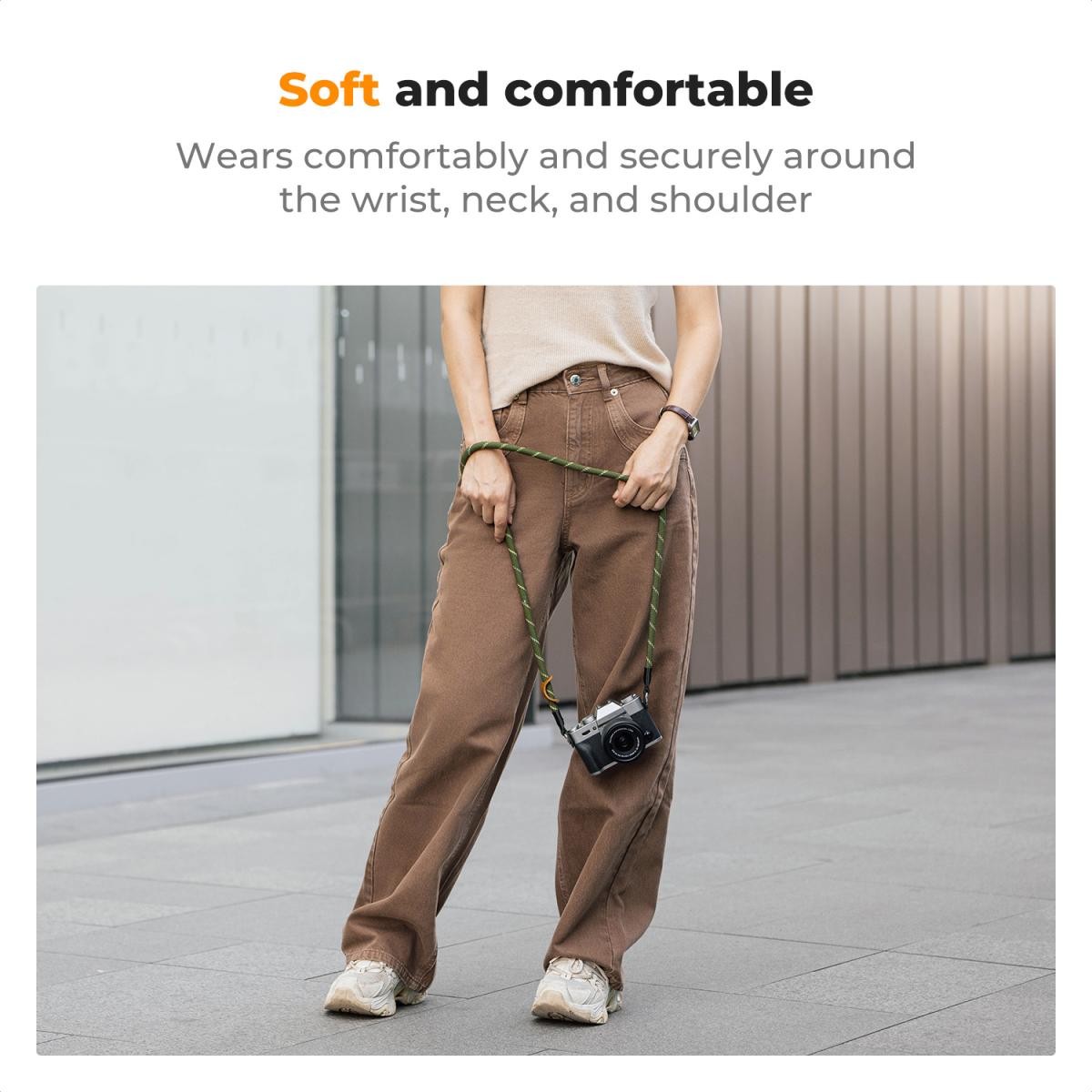 Lagan i mekan remen pruža udobno nošenje oko vrata čak i tijekom dulje uporabe, idealan za duge fotografske sesije.