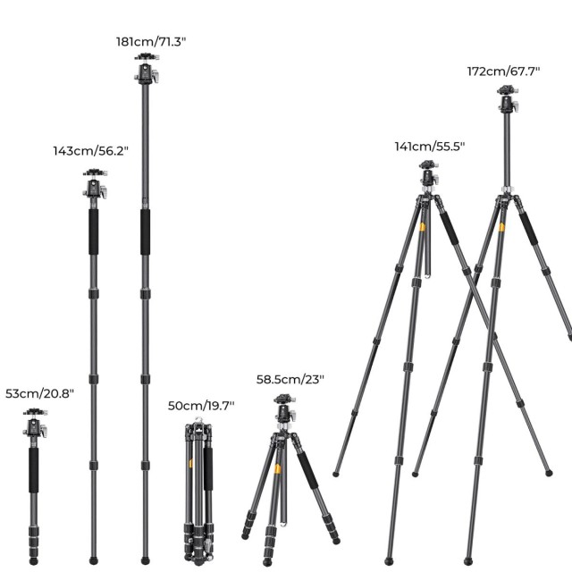 K&F Concept X254C4+BH-30 je lagani, ali visokoučinkoviti stativ od karbonskih vlakana s CNC obrađenom metalnom kuglastom glavom od 30 mm, nosivošću od 12 kg i mogućnošću panoramiranja od 360° za precizno fotografiranje i snimanje videa.