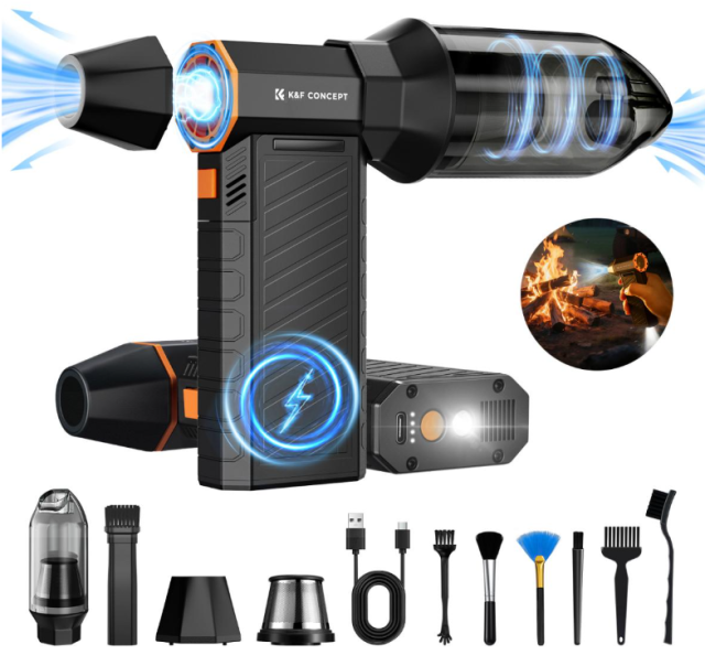 K&F Concept 2-u-1 magnetski komprimirani zračni čistač je punjivi uređaj s motorom bez četkica (300 000 okretaja u minuti, brzina vjetra 150 m/s, sila 250 G) koji kombinira snažno puhanje, usisavanje i LED rasvjetu za čišćenje računala, tipkovnica, automobila i vanjske opreme. S magnetskim mlaznicama, 6 višenamjenskih četkica, baterijom od 6000…