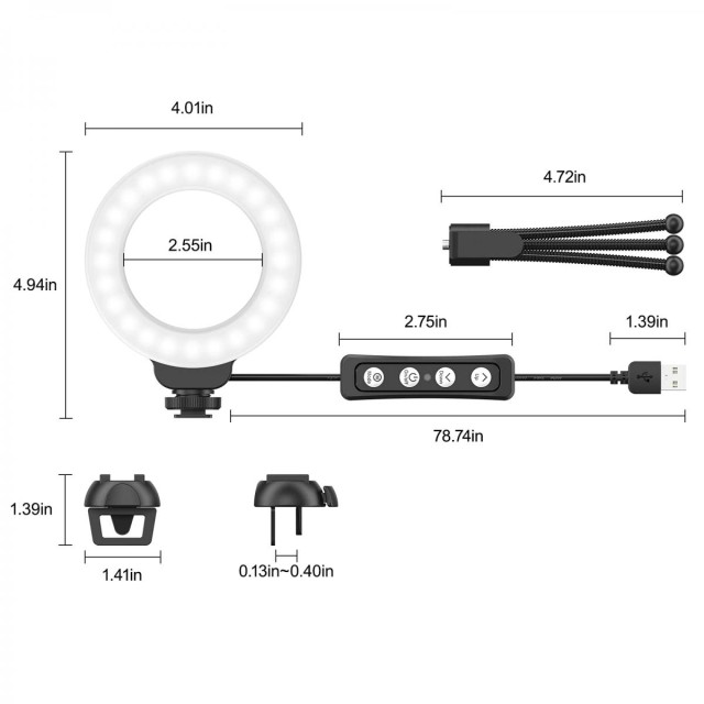 * 【Svjetlo u obliku prstena za prijenosno računalo s laganom kopčom i stativom】Ovo prstenasto svjetlo za selfie dolazi s malom kopčom i čvrstim stativom. Kvačica je lagana i neće oštetiti vaš monitor, prikladna za pričvršćivanje na monitore manje od 0,6 inča, poput prijenosnih računala. Također je opremljen tronošcem za vaš izbor, fleksibilniju upotrebu;