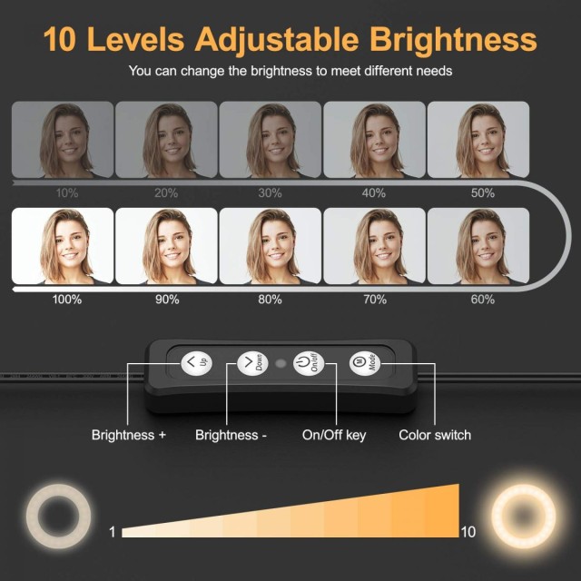* [Podržava bezstupanjsko zatamnjenje] Istodobno se može postaviti i bezstupanjsko zatamnjenje, CRI ≥ 95, raspon temperature boje 3200k-6500k, bez sjena, bez odsjaja, kako bi se zadovoljile vaše različite potrebe, to je vaš dnevni video poziv, internetska konferencija , daljinski Odličan izbor za učenje ;