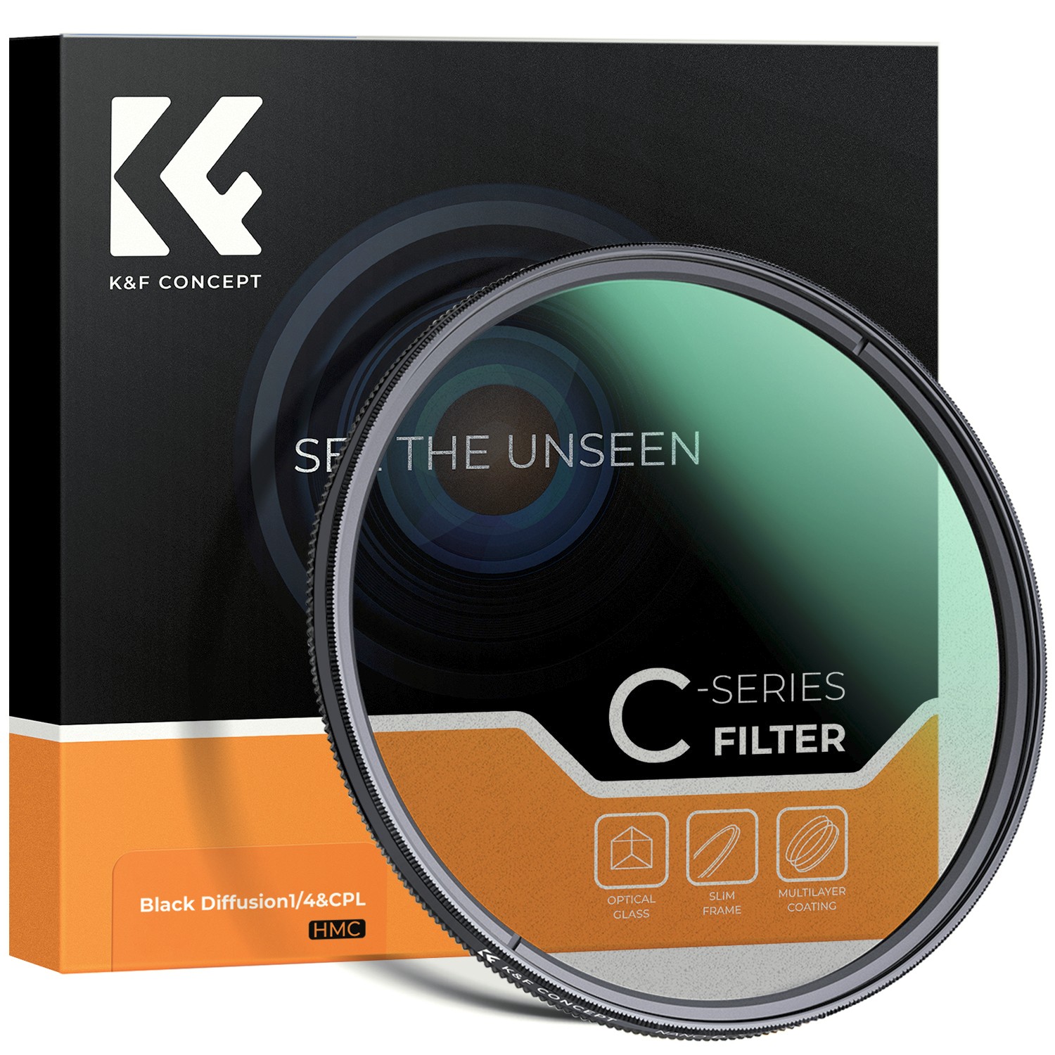 K&F Concept 43mm 2-u-1 Black Mist 1/4 + CPL filter kombinira filmsku difuziju s preciznom kontrolom polarizacije, omekšavajući istaknute dijelove, smanjujući odsjaj, poboljšavajući boje i sprječavajući vinjetiranje - sve u tankom, izdržljivom, višeslojno premazanom dizajnu, savršenom za portrete, snimanje filmova i kreativnu fotografiju.