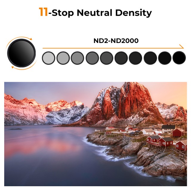 "【Funkcija filtra ND2-ND2000】Varijabla nd2000 služi za smanjenje količine svjetlosti koja prolazi kroz objektiv ili produljenje vremena snimanja kada se koristi veliki otvor blende za snimanje na mjestima s jakim svjetlom.