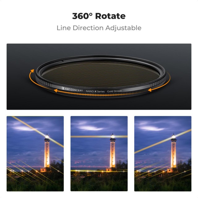 Postavljanje K&F Concept streak gold filtera ispred objektiva moglo bi stvoriti isti odsjaj kao i anamorfni objektiv. Bilo da se radi o fotografiji ili videu, ovaj filter dodaje linearni odsjaj vašim slikama, stvarajući zapanjujuće vizualne efekte i poboljšavajući umjetničku privlačnost.