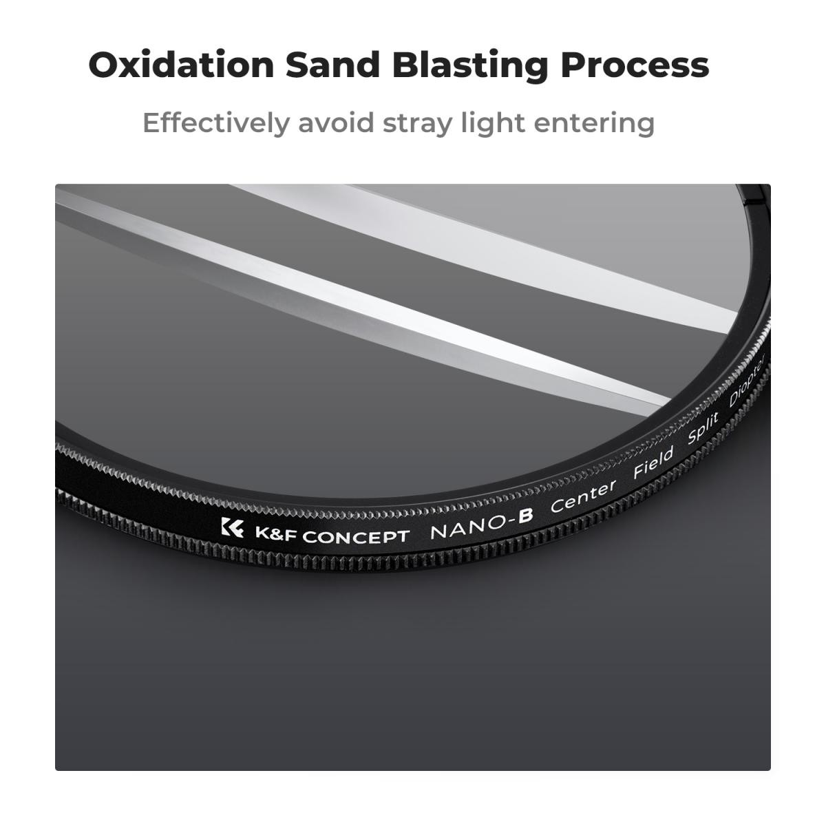 Podignite svoju fotografiju na višu razinu s K&F Concept 58mm Centerfield Split dioptrijskim filterom iz Nano-B serije . Ovaj specijalizirani filter omogućuje vam zamućenje prednjeg plana i stranica kadra, a istovremeno održava središnji objekt u oštrom fokusu, stvarajući upečatljiv slojevit efekt s osjećajem dubine. Idealan za pejzažnu, portretnu ili kreativnu umjetničku fotografiju, omogućuje fotografima istraživanje jedinstvenih vizualnih stilova i kompozicija. Izrađen od visokokvalitetnog japanskog AGC optičkog stakla, filter pruža izvrsnu propusnost svjetlosti i točnu reprodukciju boja za jasne i žive rezultate. Podesivi okvir omogućuje rotaciju kako bi odgovarao različitim okruženjima snimanja i umjetničkim potrebama, dok pjeskarena oksidacijska površina minimizira interferenciju zalutale svjetlosti. Uključena je čvrsto tkana krpa za čišćenje od mikrovlakana koja ne ostavlja dlačice, vakuumski pakirana kako bi se osigurala sigurna i učinkovita njega objektiva.