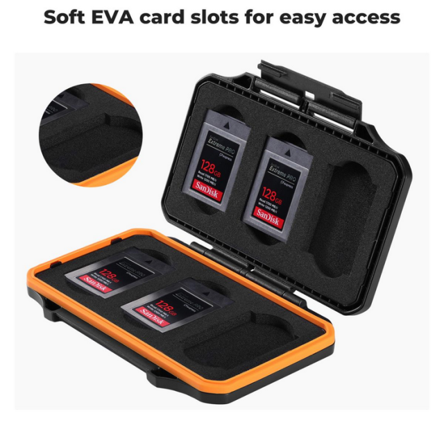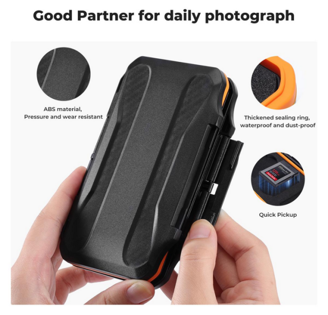 - Izdržljiva zaštita : Izrađena od vrhunskog ABS materijala, robusna školjka štiti vaše memorijske kartice od ogrebotina, udaraca i svakodnevnog trošenja. Silikonski brtveni prsten osigurava izvrsnu otpornost na vodu, prašinu i krhotine, štiteći vaše kartice u izazovnim okruženjima.