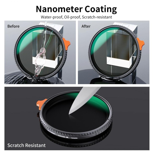 K&F Concept 62 mm promjenjivi ND filtar ND2-ND400 (9 stupnjeva) filtar objektiva vodootporan Nano-X serija otporan na ogrebotine