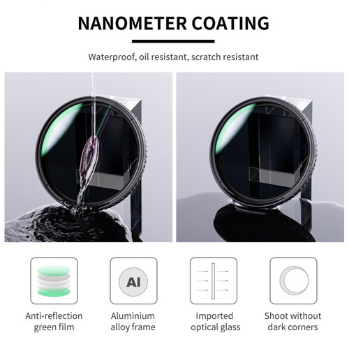 * 【No X Cross & frame self-locking technology】Dejte sbohem křížku "X" na snímcích díky špičkové technologii K&F. Filtr se zastaví při otočení do polohy Mini (ND32) nebo Max (ND512).