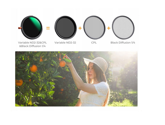 | Filter type | VND+CPL+BlackMist 3in1 |