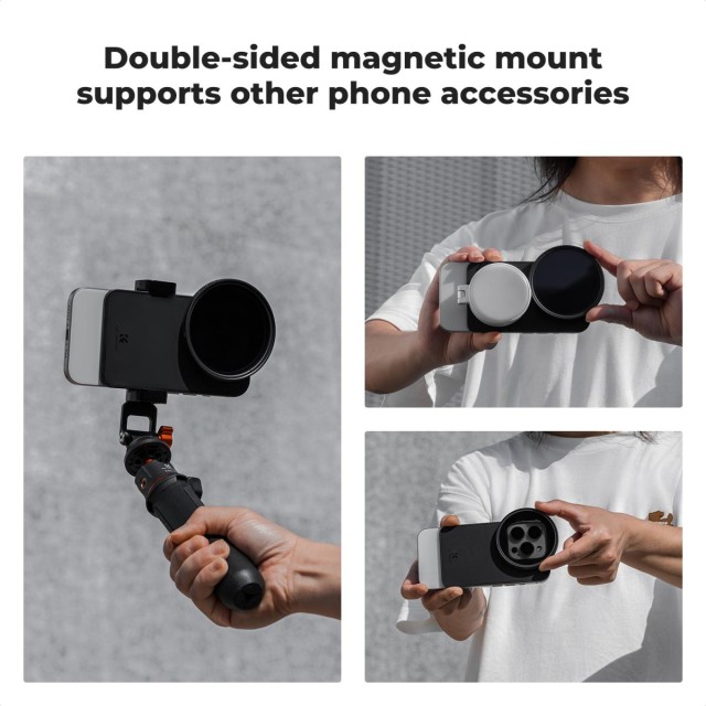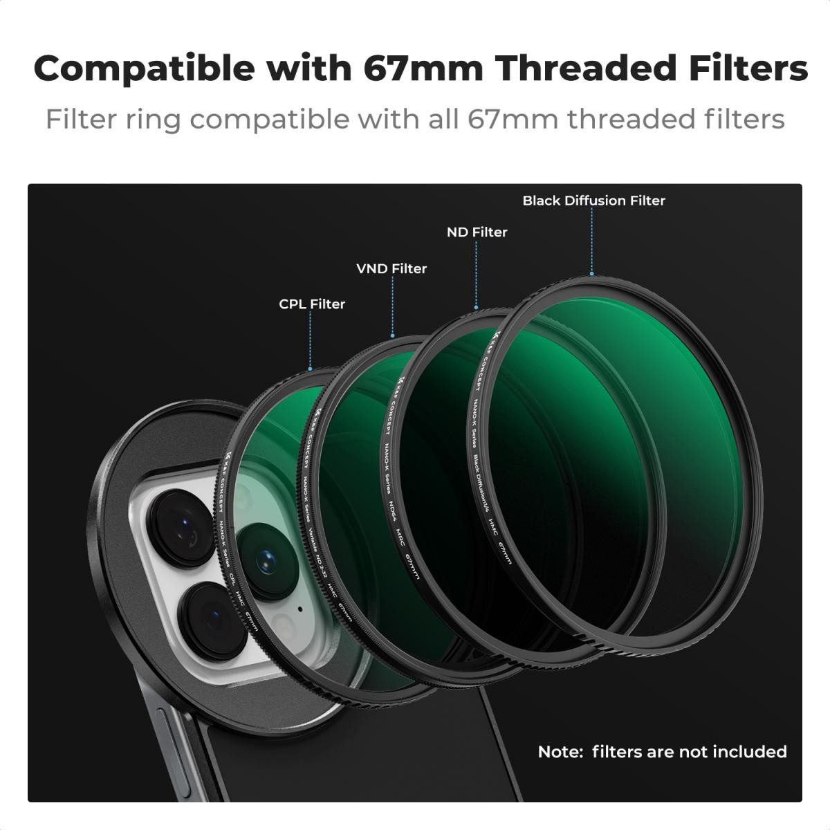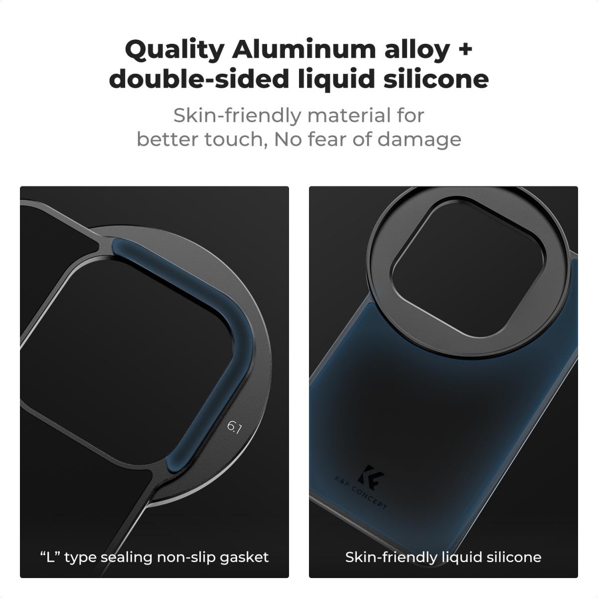 K&F Concept 6,1-inčni magnetski adapter za montažu filtera objektiva revolucionira fotografiju s iPhoneom magnetskim pričvršćivanjem na modele poput iPhonea 16/16 Pro, 15/15 Pro, 14/14 Pro, 13/13 Pro i 12/12 Pro, omogućujući besprijekorno korištenje filtera s navojem od 67 mm (CPL, ND, UV, Black Diffusion, zvjezdani filteri itd. - nisu uključeni) bez ometanja vidnog polja ili kompatibilnosti s magnetskim filterima. Njegov dvostrani proširivi magnetski dizajn omogućuje slaganje dodataka poput prstenastih svjetala ili dodatnih nosača s obje strane za svestrane postavke, dok protuklizni rukohvat u obliku slova L, bešavno brtvenje rubova protiv propuštanja svjetlosti i mekani premaz tekućeg silikona osiguravaju rukovanje bez otisaka prstiju i čvrstu stabilnost tijekom svakodnevnog snimanja.