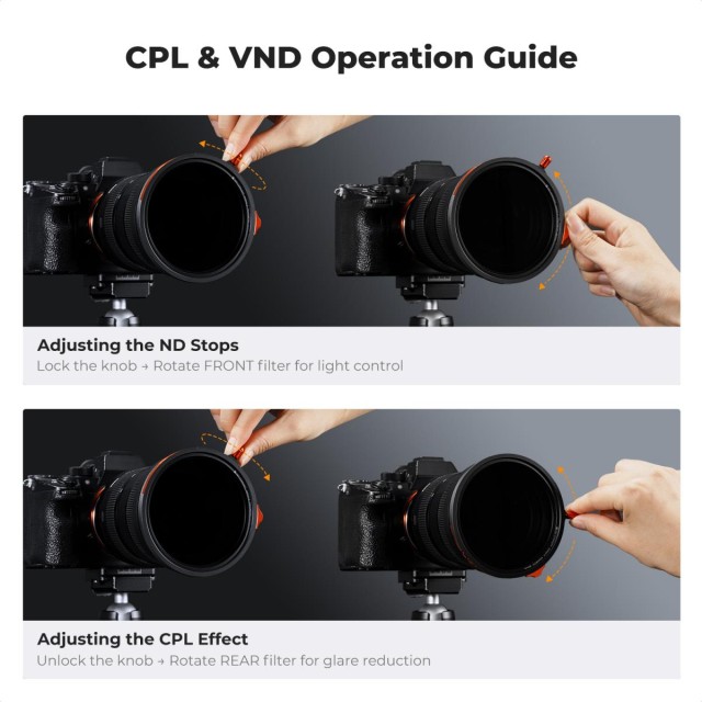 Zahvaljujući magnetskom dizajnu za brzu zamjenu, filteri se trenutno postavljaju bez muke s navojem - savršeno za brzo snimanje ili česta podešavanja. ND3–32 filter nudi glatke, precizne promjene gustoće s ugrađenim graničnicima i tihu, fluidnu rotaciju zahvaljujući vrhunskom teflonskom inženjerstvu - idealno za filmaše koji koriste usmjerene mikrofone. CPL poboljšava kontrast, uklanja refleksije i pojačava boju, dok Black Mist 1/4 filter pruža filmsku mekoću, sjajne detalje i prirodne tonove kože.