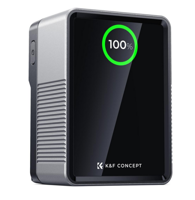 K&F Concept 99Wh Pro Mini V Mount baterija bitno je rješenje za napajanje fotografa i snimatelja u pokretu. S kapacitetom od 99 Wh i 6700 mAh na 14,8 V, pogodan je za putovanje avionom, udovoljava propisima za ručnu prtljagu. Opremljena naprednom PD USB-C tehnologijom od 100 W, ova baterija osigurava brzo punjenje i mogućnost učinkovitog napajanja prijenosnih računala, pametnih telefona i drugih uređaja. Njegove opsežne mogućnosti povezivanja uključuju dva USB-C priključka, jedan USB-A priključak, jedan DC priključak (12V, 5,5x2,5 mm), BP i D-TAP priključke, što ga čini svestranim čvorištem za napajanje. TFT zaslon u boji u stvarnom vremenu omogućuje jasno praćenje izlazne snage i statusa baterije. Izrađen od izdržljive aluminijske legure i računala otpornog na vatru, također ima noćno svjetlo za hitne slučajeve za praktičnost u uvjetima slabog osvjetljenja, osiguravajući pouzdanost u zahtjevnim okruženjima.