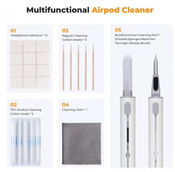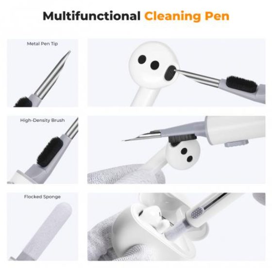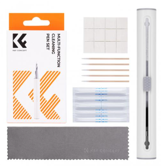 K&F Concept Airpod Cleaner Kit je višenamjenska 3-u-1 olovka za čišćenje s mekom četkom, spužvom za čišćenje, memorijskim štapićem, ljepljivom trakom za povlačenje, alkoholnim štapićem i krpom od mikrovlakana, dizajnirana za temeljito održavanje Bluetooth slušalica. Uklanja ulje, prašinu, mrlje i bakterije s površina, zvučnih otvora i odjeljaka, vraćajući higijenu i sjaj AirPodsima ili sličnim uređajima.