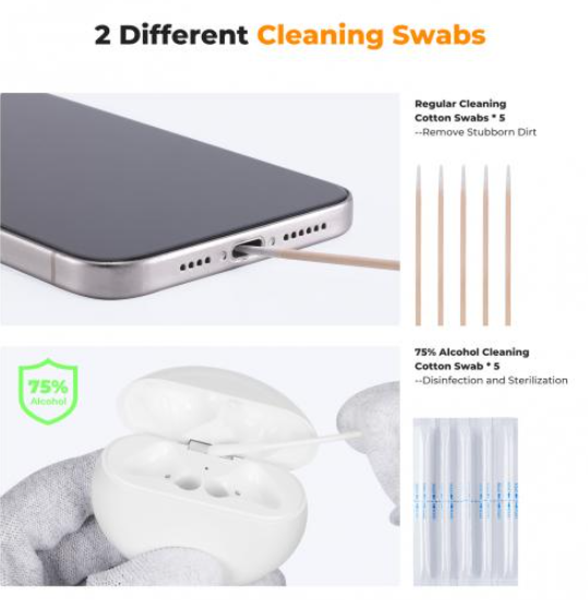 K&F Concept Airpod Cleaner Kit je sveobuhvatno, prijenosno higijensko rješenje za Bluetooth slušalice poput AirPodsa, koje sadrži 3-u-1 višenamjensku olovku koja integrira meku četku za ribanje tvrdokorne prljavštine s vanjskih dijelova slušalica i futrola za pohranu, vrh spužve s naborima za nježno brisanje površina i memorijski štapić od vate (ekspandirajuća pjena, duljine 2 cm) za dubinsko čišćenje ulja i prašine iz pretinaca za slušalice bez ostataka. Ljepljivi mehanizam s jezičkom za povlačenje (na bazi silikona, bez ostataka) prianja na filtere za izlaz zvuka kako bi izvukao ugrađene čestice nakon uklanjanja, dok priloženi alkoholni štapić (75% izopropil, prethodno navlažen vrh vate) denaturira bakterijske proteine, učinkovito uklanjajući 99% uobičajenih patogena poput stafilokoka i E. coli za higijensku dezinfekciju. Završna krpa od mikrovlakana (7,5 x 7,5 cm, 200 g/m² tkanina bez dlačica) polira površine do sjaja bez tragova, osiguravajući da komplet pokriva sve potrebe čišćenja - od početnog uklanjanja mrlja do završnog poliranja - u kompaktnom pakiranju spremnom za putovanja (ukupna težina 50 g, dimenzije 15 x 2 cm presavijeno). Sigurna za osjetljivu elektroniku s neabrazivnim materijalima (spužva Shore A 40, četka bez elektrostatskog pražnjenja), sprječava nakupljanje bakterija od dulje upotrebe, potičući zdravije audio iskustvo za svakodnevne putnike ili ljubitelje fitnessa.