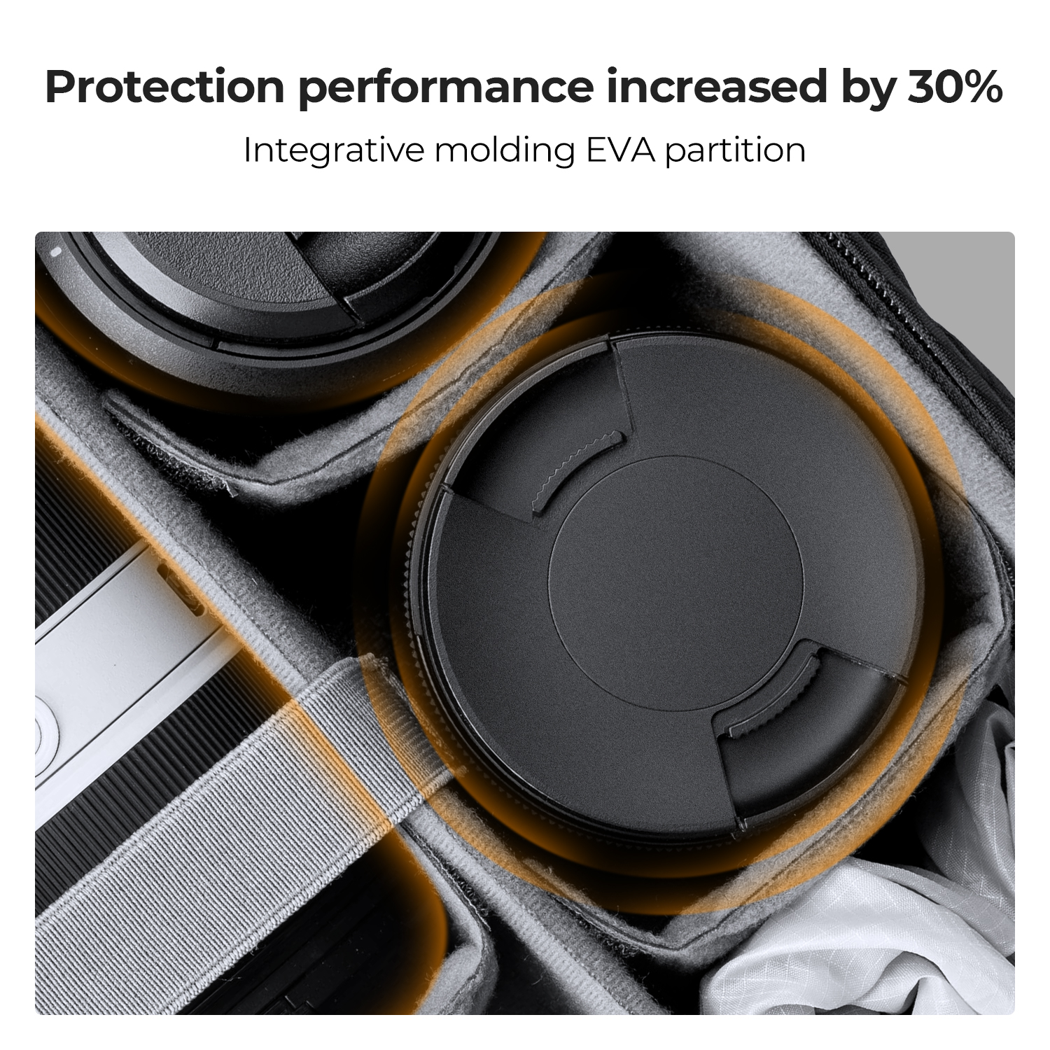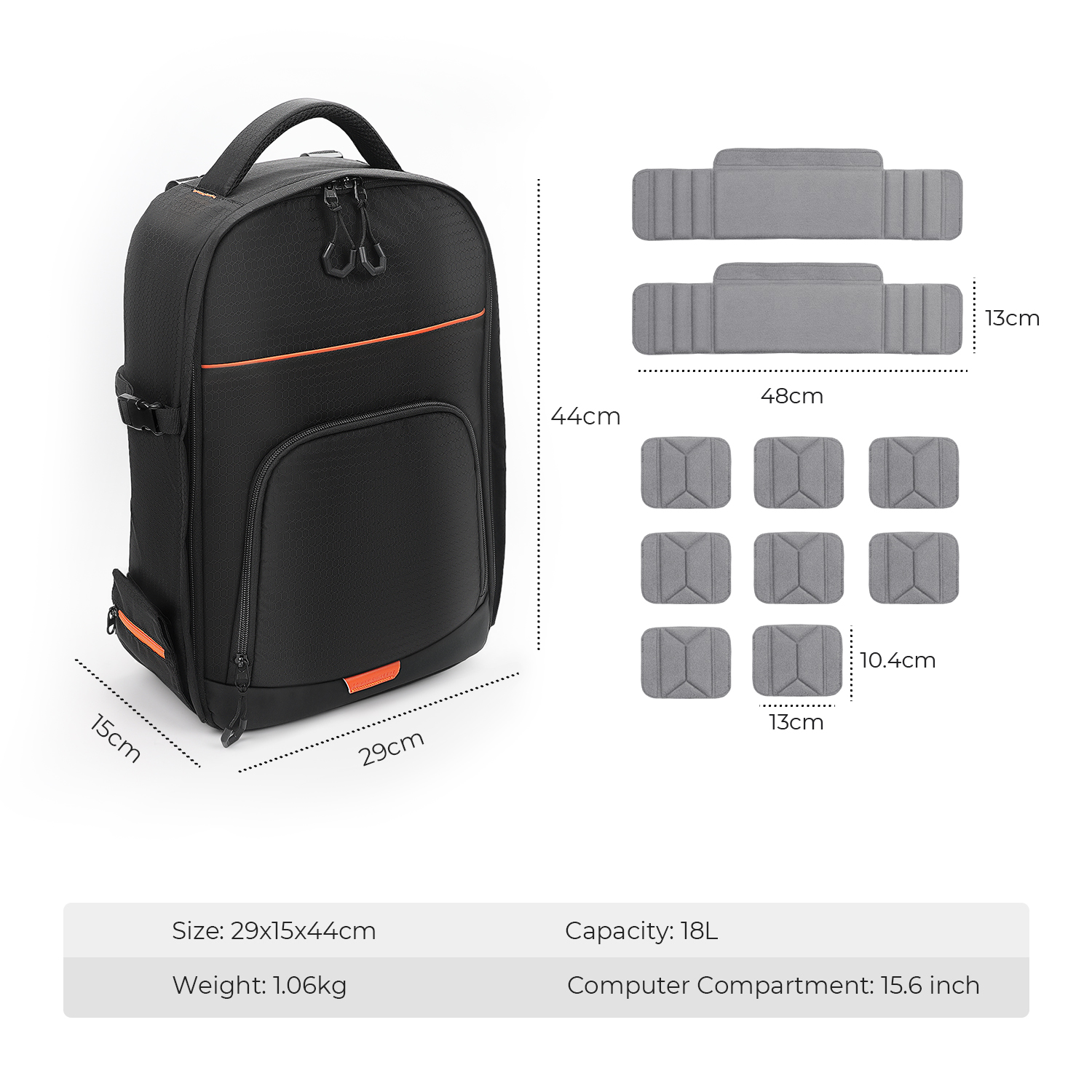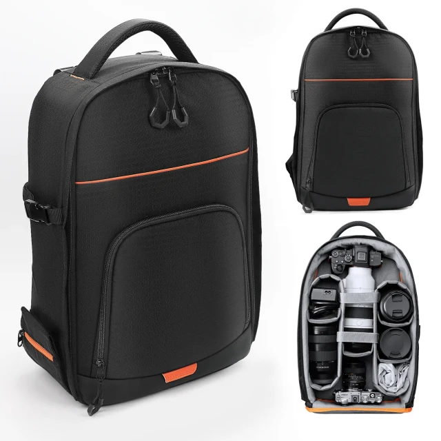 Ruksak 18L. Lagan dizajn, uzimajući u obzir vrhunsku zaštitu, sigurnost i praktičnost. Prednje otvaranje, bolja zaštita i protuprovalna zaštita, potpuno otvaranje od 180°, prilagođene pregrade za pohranu, raspored prostora i organizacija opreme, unutarnji predmeti su pregledni na prvi pogled, maksimalna praktična organizacija, maksimalno dva uređaja i više objektiva, zadovoljava potrebe razne opreme i može se slobodno samostalno organizirati.