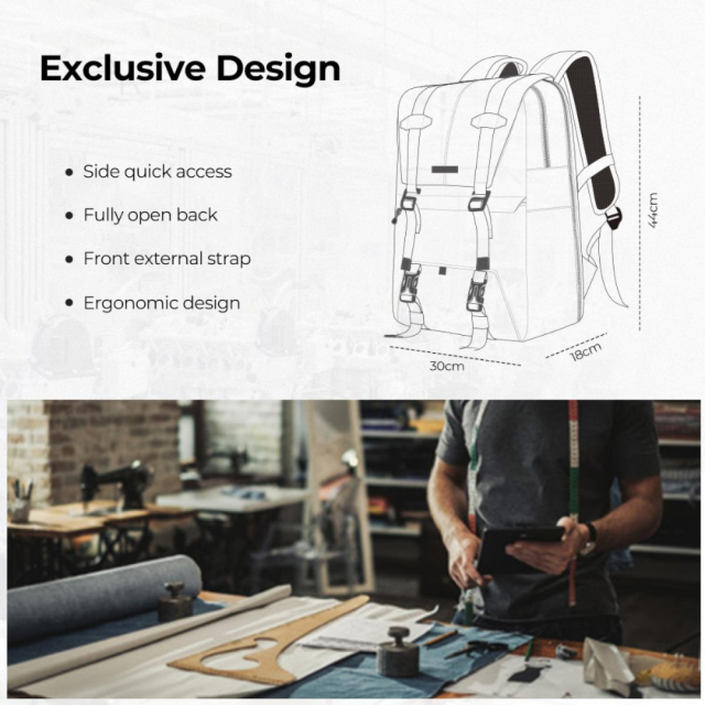 - Dizajniran za fotografe: Posebni unutarnji džepovi dizajnirani za spremanje rezervnih dijelova za fotografiju, kao što su filtri, adapterski prstenovi itd. Skriveni prednji džep za spremanje svakodnevnih dodataka. možete nositi bocu vode ili kišobran u bočnim džepovima.