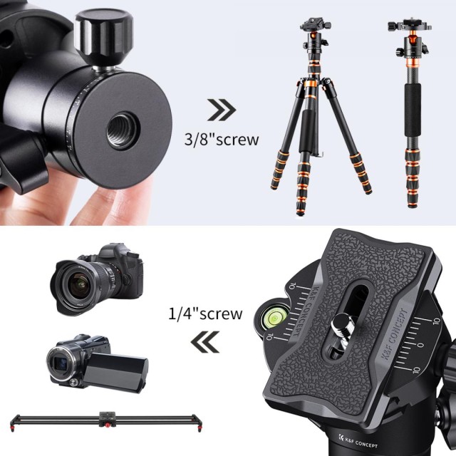Kuglasta glava stativa K&F Concept s 1/4 inčnom pločom za brzo otpuštanje i libelom, nosivost 8 kg, za stativ, monopod, klizač kamere, SLR kameru