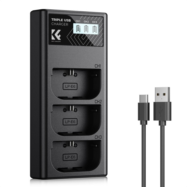 K&F Concept Canon LP-E6NH punjač za fotoaparate s 3 paketa s LCD zaslonom pruža učinkovito i pouzdano rješenje za punjenje za profesionalne fotografe i fotografe hobiste. Dizajniran za istovremeno punjenje do tri Canon LP-E6NH baterije, ovaj je punjač idealan za produljena snimanja i putovanja.