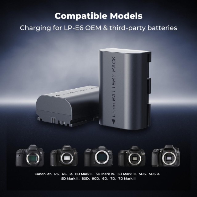 K&F Concept 2 baterije LP-E6NH od 2600 mAh i punjač od 18 W. Ostanite napunjeni za dulje snimanje uz K&F Concept KF28.0088 set baterija i punjača , dizajniran za Canon EOS fotoaparate. Ovaj komplet uključuje dvije baterije velikog kapaciteta od 2600 mAh LP-E6NH i PD-omogućen 18 W USB-C punjač , koji pruža brzo, pouzdano punjenje i dulje vrijeme rada za profesionalne kreativce.