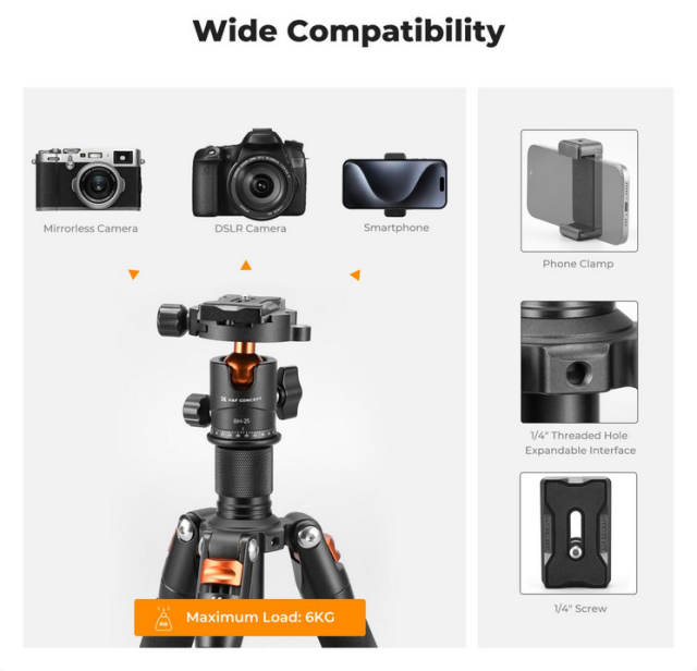 K&F Concept Desktop Mini Stativ je kompaktan i čvrst stativ od 20,5 inča dizajniran za stabilno snimanje bez podrhtavanja, sa kuglastom glavom niskog profila od 360° i širokom kompatibilnošću za razne uređaje.