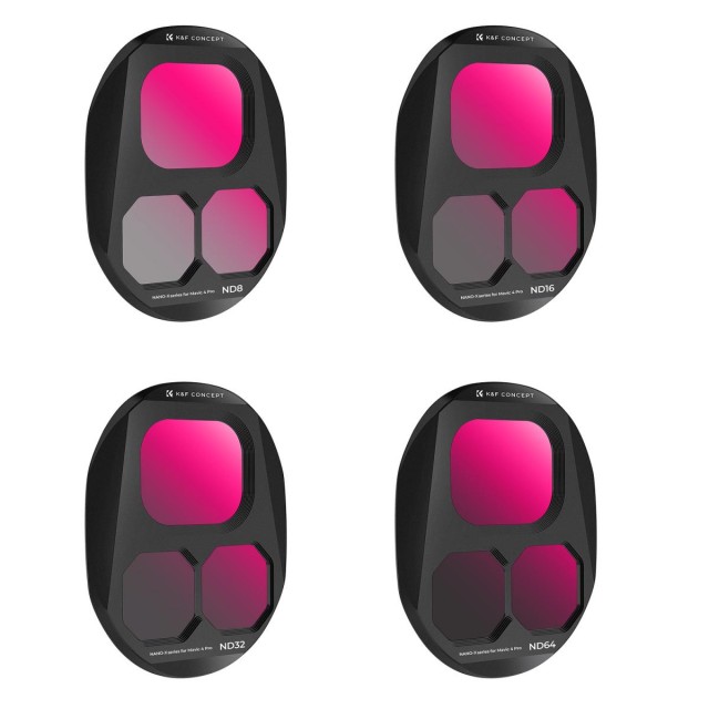 K&F CONCEPT DJI Mavic 4 Pro ND filterski komplet posebno je namijenjen zračnim fotografima i snimateljima koji zahtijevaju dosljednu kontrolu ekspozicije i kinematografsko kretanje u različitim uvjetima osvjetljenja. Set uključuje četiri uobičajeno korištena ND filtera - ND8, ND16, ND32 i ND64 - koji vam omogućuju smanjenje svjetla za 3 do 6 stupnjeva i održavanje optimalne brzine zatvarača od oblačnih dana do intenzivnog podnevnog sunca.