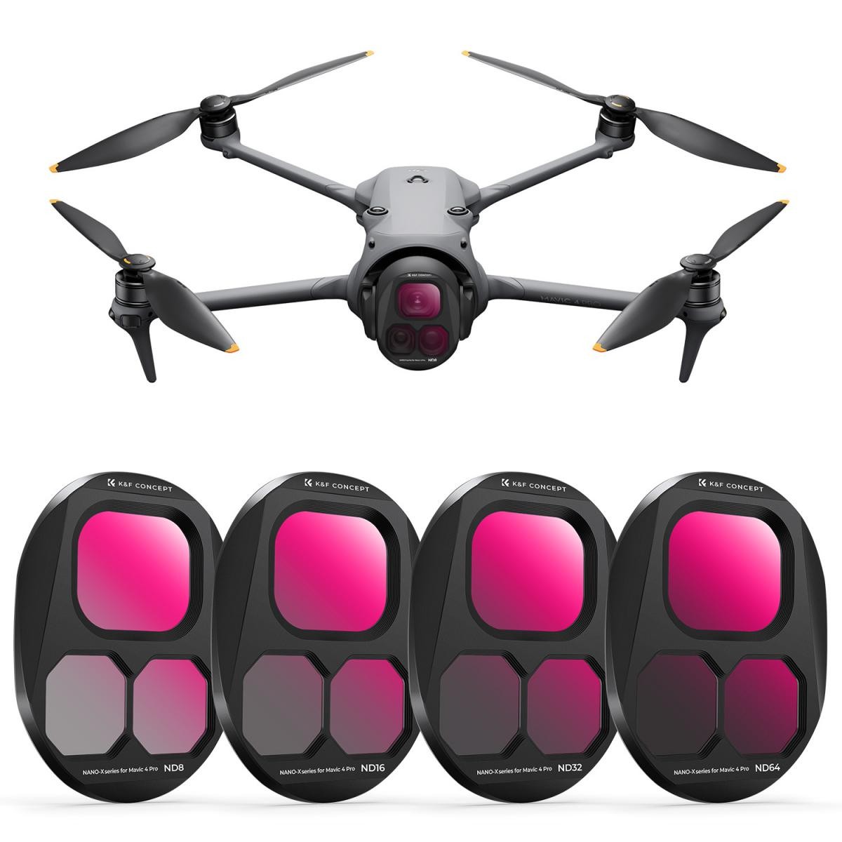 K&F CONCEPT DJI Mavic 4 PRO ND komplet filtera SKU1640 sadrži ND8 ND16 ND32 i ND64 objektive za preciznu kontrolu ekspozicije. Uživajte u zapanjujućoj zračnoj fotografiji i snimanju videa s ovim profesionalnim HD objektivima. Njihov dvostrani premaz nudi poboljšanu izdržljivost i vodootporan je za pouzdanu upotrebu u svim uvjetima.