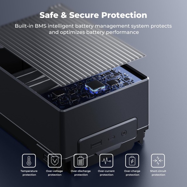 - Sigurno i pouzdano: V Mount baterija koristi visokokvalitetne baterijske ćelije poznatih marki, a inteligentni BMS sustav pruža višestruku zaštitu, uključujući zaštitu od prekomjerne struje, kratkog spoja, previsoke temperature i prenapona.
