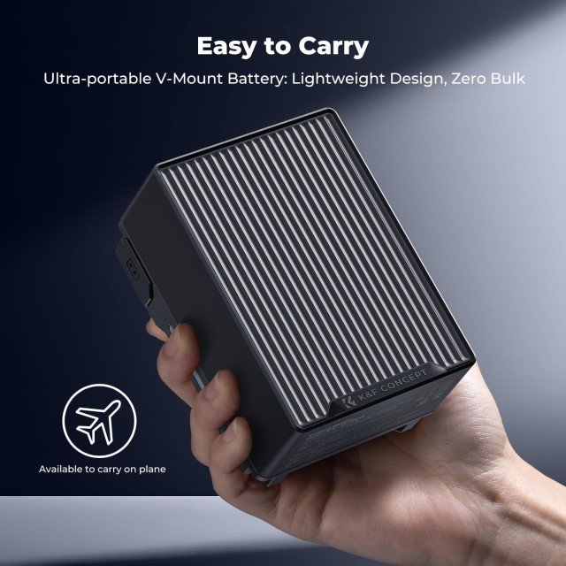 - Prijenosan dizajn i prilagođen zrakoplovima: V-mount baterija dimenzija 104*74*50, teži 525 g. Kućište je čvrsto i otporno na udarce, izrađeno od vatrootpornog PC materijala koji je otporan na ogrebotine i siguran za upotrebu. Prikladno za zrakoplove, može se nositi u avionu.
