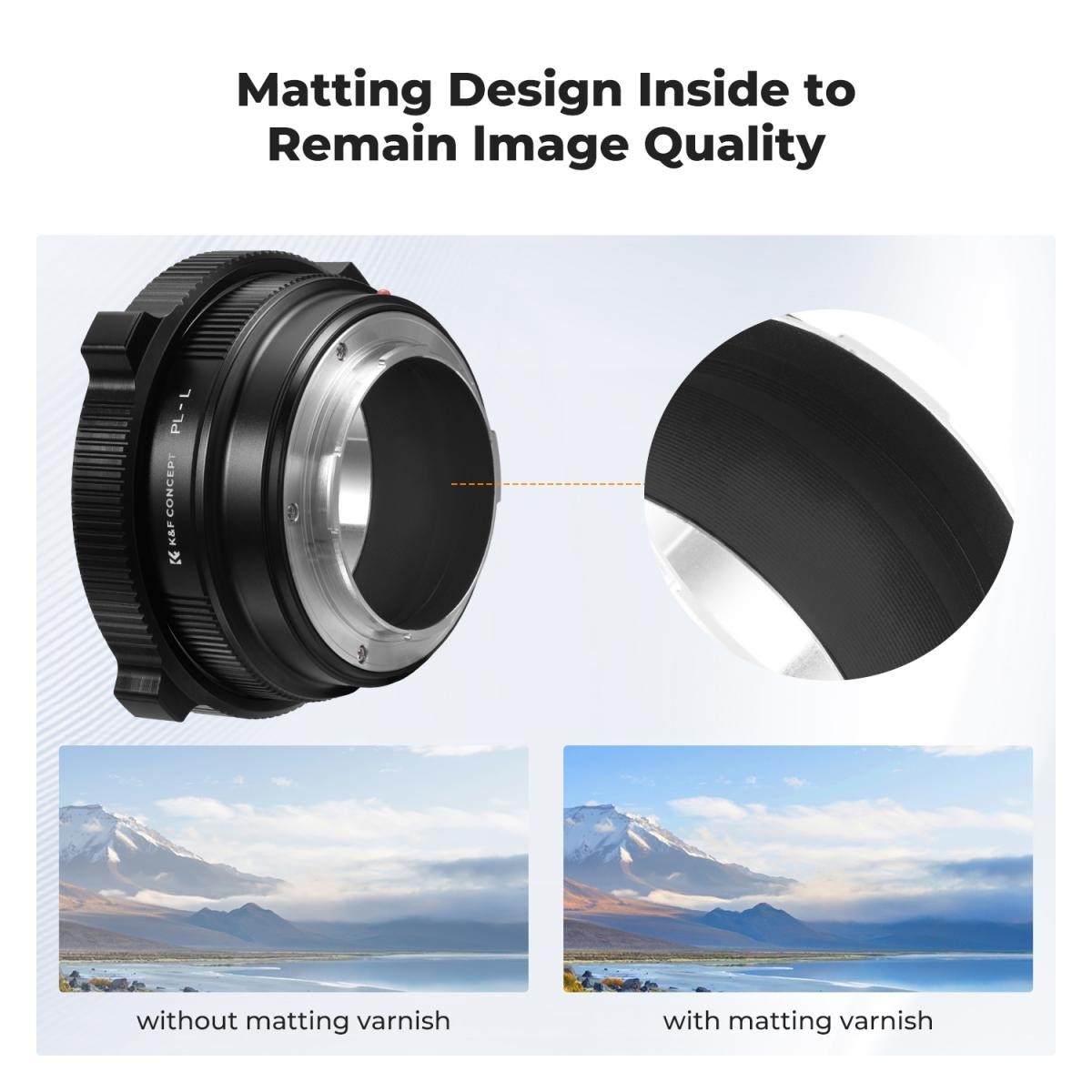 K&F Concept visokoprecizni PL-L adapter za bajonet: Ručni adapter za PL na L-bajonet s beskonačnim fokusom, tvrdo eloksiranim aluminijem i mat unutarnjom površinom za Leica, Panasonic LUMIX i Sigma L-bajonet fotoaparate.