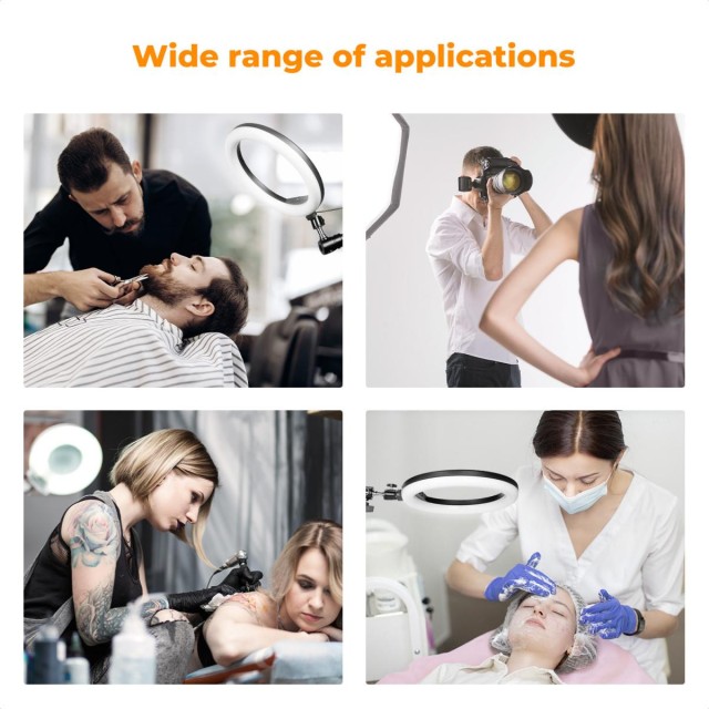 - * 【Svestrana kompatibilnost】Opremljen standardnim adapterom za vijak od 1/4" do 3/8", ovaj nosač se besprijekorno spaja na raznu laganu studijsku opremu, uključujući glave kamera, svjetla za dopunu i mikrofone. Njegova široka kompatibilnost čini ga idealnim za upotrebu u brijačnicama, salonima za tetoviranje, kozmetičkim salonima, glazbenim studijima, fotografskim studijima i postavkama za prijenos uživo.