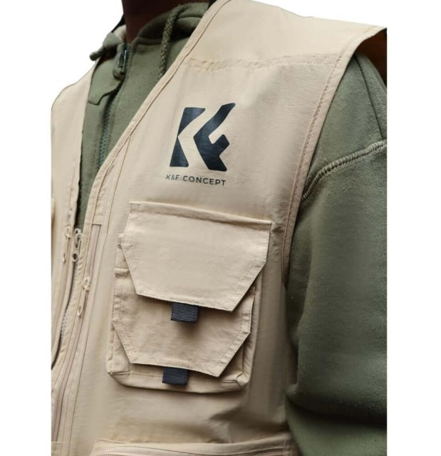Ostanite organizirani i udobni u pokretu uz K&F Concept fotografski prsluk . Izrađen od lagane, prozračne Tassnelon tkanine, ovaj izdržljivi bež prsluk ima više sigurnih džepova za jednostavan pristup vašim fotografskim i vanjskim potrepštinama. Dizajniran za fotografe, snimatelje, putnike i avanturiste, osigurava slobodu kretanja i ravnomjernu raspodjelu težine za cjelodnevno nošenje.