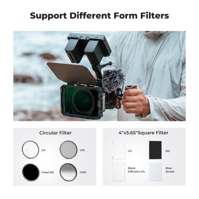 - * 【Svestran i siguran sustav filtera】Mat kutija može držati dva filtera debljine 4 mm dimenzija 4x5,65" i uključuje siguran mehanizam zaključavanja. Zadovoljava potrebe snimanja u različitim scenama.