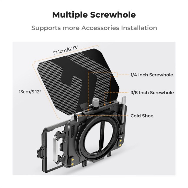 Zaštitite svoju filmsku viziju od neželjenog odbljeska uz K&F Concept Matte Box Kit, profesionalno rješenje za DSLR i mirrorless fotografe koji žele besprijekorne snimke visokog kontrasta. Izrađen od ultralaganih karbonskih vlakana s elegantnom mat završnom obradom i inovativnim proširenim sjenilom, ovaj mat okvir debljine 34 mm učinkovito blokira zalutalu svjetlost, a istovremeno uklanja vinjetiranje - čak i na superširokokutnim objektivima od 16 mm (napomena: nije kompatibilno sa Sony FE PZ 28-135 mm f/4 OSS). Svestrani sustav s dva utora sigurno drži dva filtera od 4x5,65" (debljine do 4 mm) s pouzdanim mehanizmom zaključavanja, omogućujući besprijekornu zamjenu za ND, difuziju ili gradaciju boja u dinamičnim scenama. Pet preciznih adapterskih prstenova (67/72/77/82/95 mm) osigurava široku kompatibilnost s objektivima, dok integrirani priključci od 1/4", 3/8" i "cold shoe" otključavaju beskrajne mogućnosti postavljanja mikrofona, monitora ili follow-focusa. Osiguran za budućnost s bočnim i šinskim produžnim pločama, lako se skalira za promjenjive postavke. Pakiran sa zaštitnom torbom za pohranu, ovaj komplet pruža prenosivost i izdržljivost za filmaše "run-and-gun", snimatelje snimatelja divljih životinja ili studijske profesionalce - podižući svaki kadar optičkom čistoćom i kreativnom slobodom.