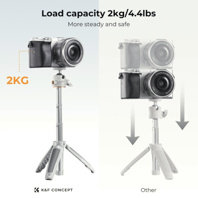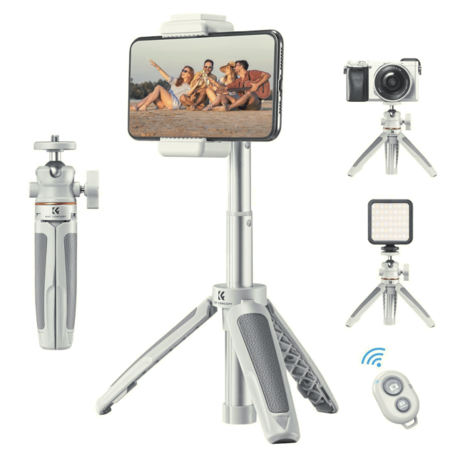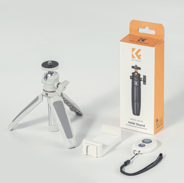 K&F Concept MS02 (narančasto-sivi) je kompaktan, lagan i vrlo svestran mini stativ dizajniran za pametne telefone i fotoaparate, savršen za vlogere, putnike i kreatore sadržaja u pokretu. S produljivim vratom, čvrstim nogama otpornim na klizanje, kuglastom glavom podesivom za 360° i univerzalnim rukohvatom za pametne telefone, nudi stabilno snimanje iz bilo kojeg kuta. S uključenim Bluetooth daljinskim upravljačem i ultra-prijenosnim sklopivim dizajnom, MS02 je idealno sve-u-jednom rješenje za selfije, snimanje sa stola i mobilnu fotografiju.