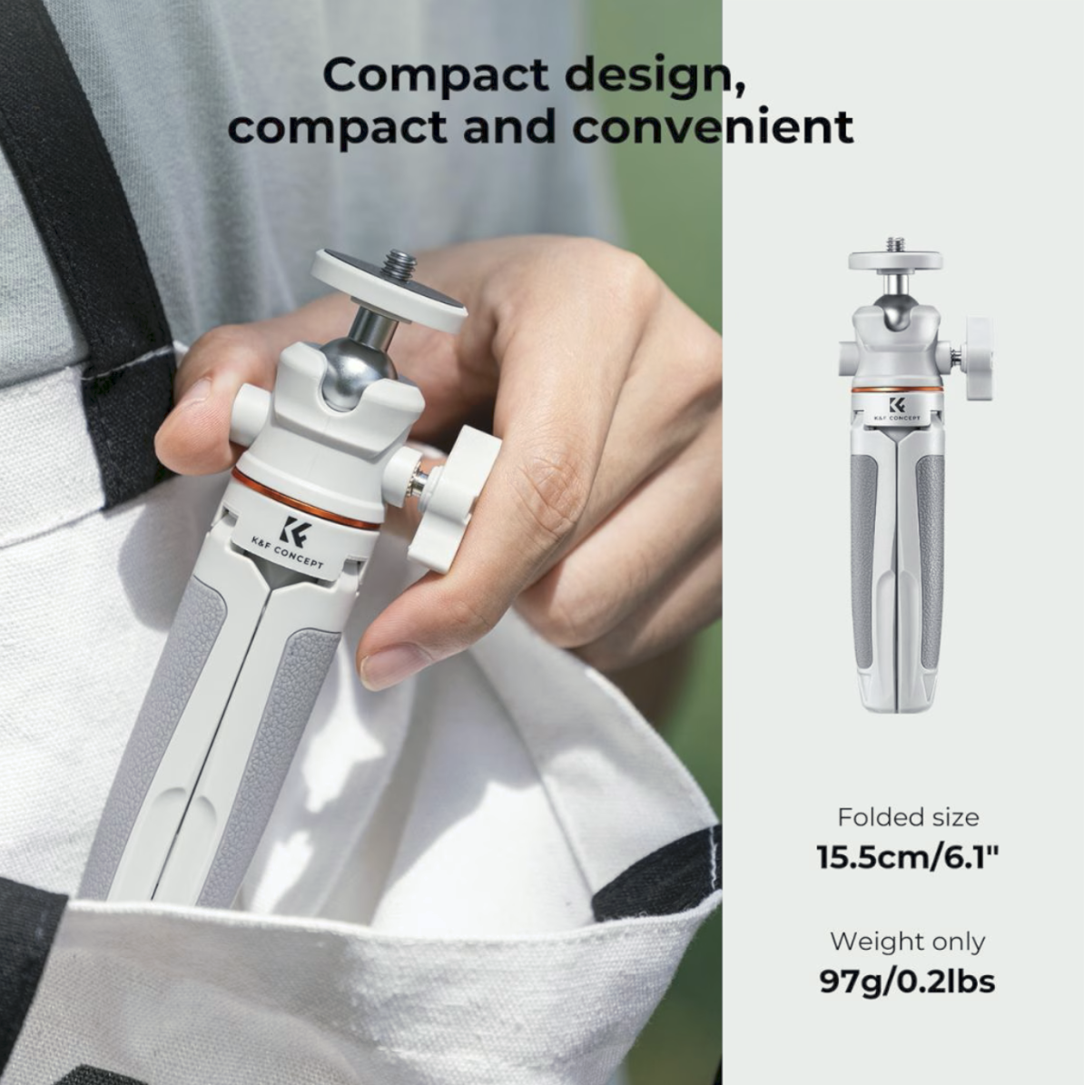 K&F Concept MS02 (narančasto-sivi) mini tronožac je pristupačan, a opet vrhunski alat dizajniran za fotografiranje pametnim telefonom, vlogove, online streaming i snimanje na putovanjima. Izrađen s obzirom na prenosivost, njegova kompaktna sklopljena duljina od samo 12,5–15 cm omogućuje mu da lako stane u džep, torbu ili novčanik, što ga čini idealnim za kreatore u pokretu. Unatoč malom prostoru, MS02 pruža iznimnu stabilnost s nožicama obloženim gumom otpornim na klizanje koje održavaju čvrsto prianjanje na bilo kojoj površini - bilo da snimate kod kuće, na otvorenom ili na setu.
