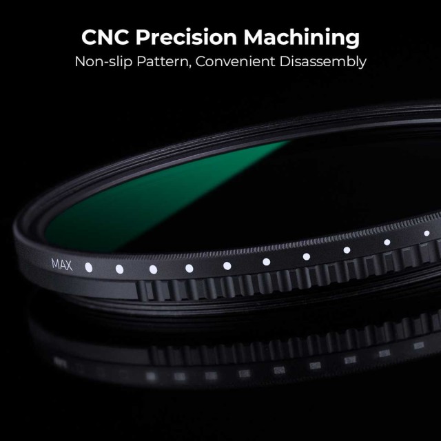 Ovaj ND8-ND2000 filtar promjenjive neutralne gustoće ima raspon faktora filtra od 0,9 do 3,3 i omogućuje smanjenje izloženosti od 3 do 11 stupnjeva. Može pomoći u dodavanju zamućenja pri pokretu i smanjenju dubine polja pri snimanju fotografija i odabiru odgovarajućeg broja sličica u sekundi pri snimanju videozapisa.