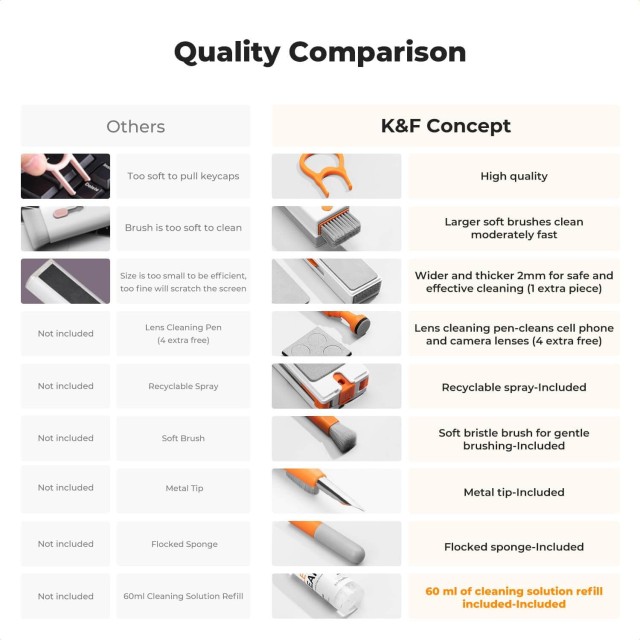 Održavajte svoje uređaje kao nove uz K&F CONCEPT 11-u-1 komplet za čišćenje elektronike , pažljivo dizajnirano višenamjensko rješenje za čišćenje za moderne korisnike tehnologije. Bez obzira čistite li prašnjavu tipkovnicu, zaprljani zaslon pametnog telefona, objektiv fotoaparata ili bežične slušalice, ovaj nadograđeni komplet pruža preciznost, sigurnost i praktičnost.