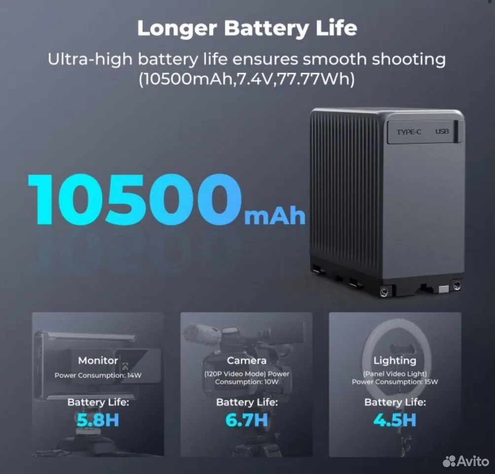 Opremljena USB-C Power Delivery brzim punjenjem do 45 W, baterija se može brzo napuniti između snimanja, a funkcionira i kao powerbank za pametne telefone i dodatke. Ugrađeni OLED zaslon osjetljiv na dodir jasno prikazuje točan preostali postotak baterije pritiskom na gumb, omogućujući precizno upravljanje napajanjem na setu.