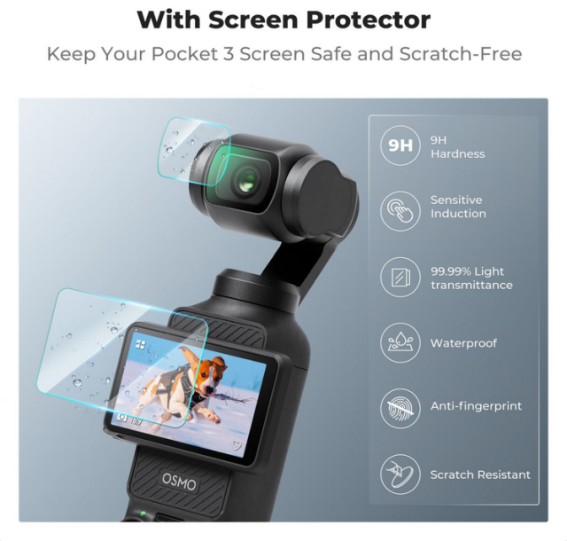 - Zaštita zaslona od kaljenog stakla otporna na eksploziju : Izrađena od visokokvalitetnog 9H kaljenog stakla, zaštita zaslona nudi izvrsnu otpornost na ogrebotine i zaštitu od oštrih predmeta poput ključeva i noževa, osiguravajući da zaslon vaše kamere ostane siguran i netaknut.