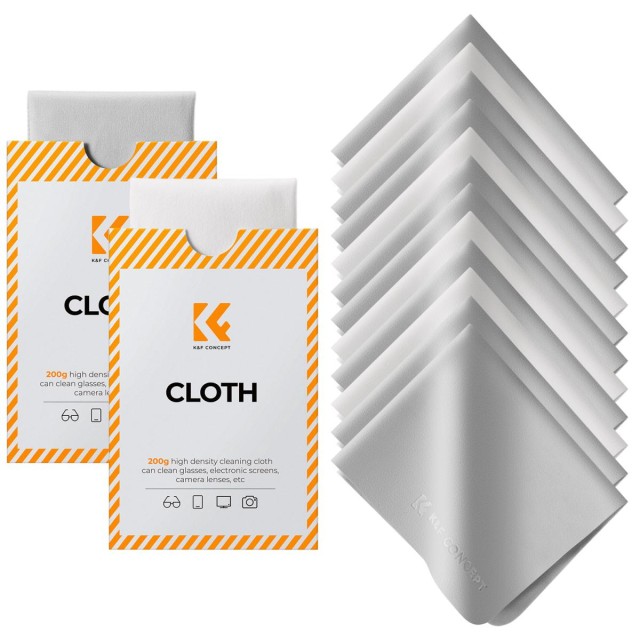K&F Concept 12-paket vrhunskih mikrofiber krpa za čišćenje (6 x 7" / 15 x 18 cm) izrađen je od 200 g tkanine visoke gustoće koja ne ostavlja dlačice s ravnim rubovima za čišćenje cijele površine. Perive su, mogu se ponovno koristiti i idealne su za leće, ekrane, naočale, fotoaparate, tablete i optiku - pružajući sigurne rezultate bez tragova u pokretu.