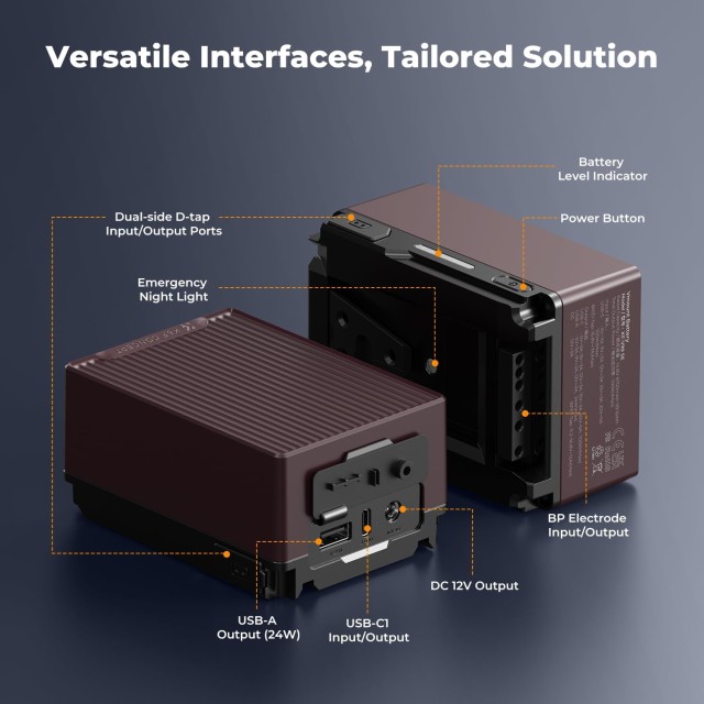 Kompatibilnost s V-Mount baterijom od 99 Wh: Ova V-Mount baterija ima dva D-TAP priključka, USB-C, USB-A, 12 V (5,5 x 2,5 mm), BP, za kameru, kamkorder, monitor, LED video svjetla, tablet, telefon i prijenosno računalo itd.