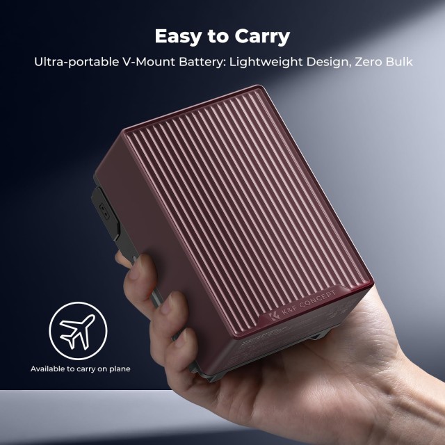 Prijenosan dizajn i prilagođen zrakoplovima: V-mount baterija dimenzija 104*74*50, teži 525 g. Kućište je čvrsto i otporno na udarce, izrađeno od vatrootpornog PC materijala koji je otporan na ogrebotine i siguran za upotrebu. Prikladno za zrakoplove, može se nositi u avionu.