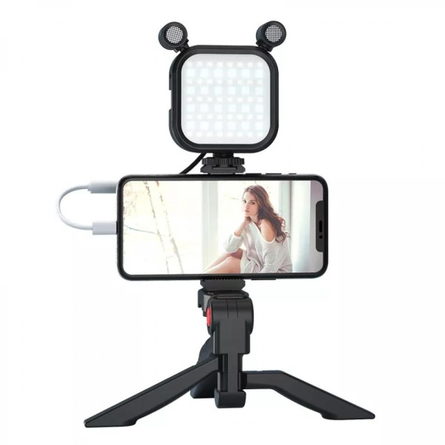 Komplet za emitiranje uživo, selfije, medijske intervjue, snimanje na otvorenom s ručnim mikrofonom i svjetlosnim punjenjem za vlogging