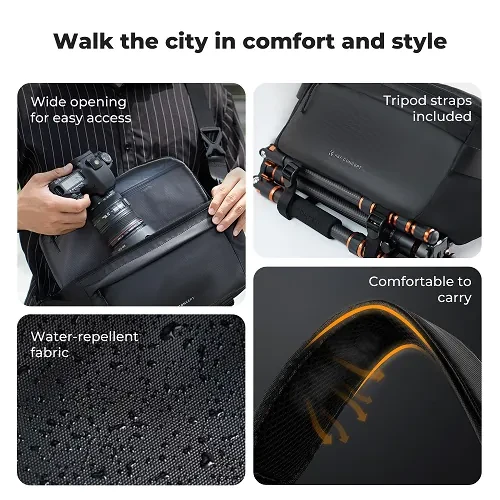 Dizajnirana za modernog fotografa i urbanog avanturistu, K&F Concept KF13.212 Urban Wander torba za kameru nudi savršenu ravnotežu stila, zaštite i praktičnosti . S kapacitetom od 10 litara , ova kompaktna, ali prostrana torba za nošenje preko ramena/preko ramena idealna je za nošenje vaše foto opreme, svakodnevnih potrepština ili čak malog drona. Vanjski dio torbe otporan na vremenske uvjete i izdržljivi vodootporni materijali štite vašu opremu od kiše, prašine i slučajnog prskanja - savršeno za gradska snimanja i putovanja na otvorenom. Prilagodljive podstavljene pregrade pružaju fleksibilnu organizaciju za vašu kameru, objektive i pribor, dok brzi bočni otvor osigurava da nikada ne propustite snimak.