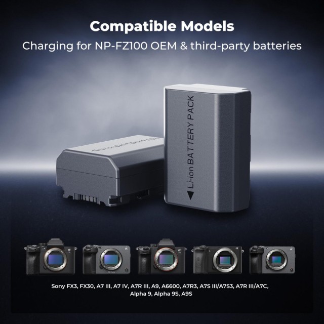 Sony NP-FZ100 18W modularni brzi punjač i komplet baterije, baterija velikog kapaciteta 2600mAh za Sony A7iii, A7R V, IV, Alpha A7C, A6700, ILCE-1M2, A7R3, ZV-E1, FX3, FX30.