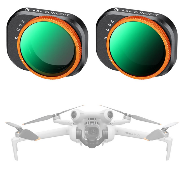 Podignite svoju DJI Mini 4 Pro fotografiju na sljedeću razinu uz K&F Concept Variable ND komplet filtera za leće. Ovo pakiranje od 2 uključuje dva svestrana filtra: ND2-32, koji nudi smanjenje stop svjetla za 1-5, i ND32-512, koji omogućuje smanjenje stop svjetla za 5-9. Ovi filtri vam omogućuju precizno podešavanje ekspozicije kako bi odgovaralo različitim uvjetima osvjetljenja, što ga čini idealnim za snimanje iz zraka pri jakom i slabom osvjetljenju.