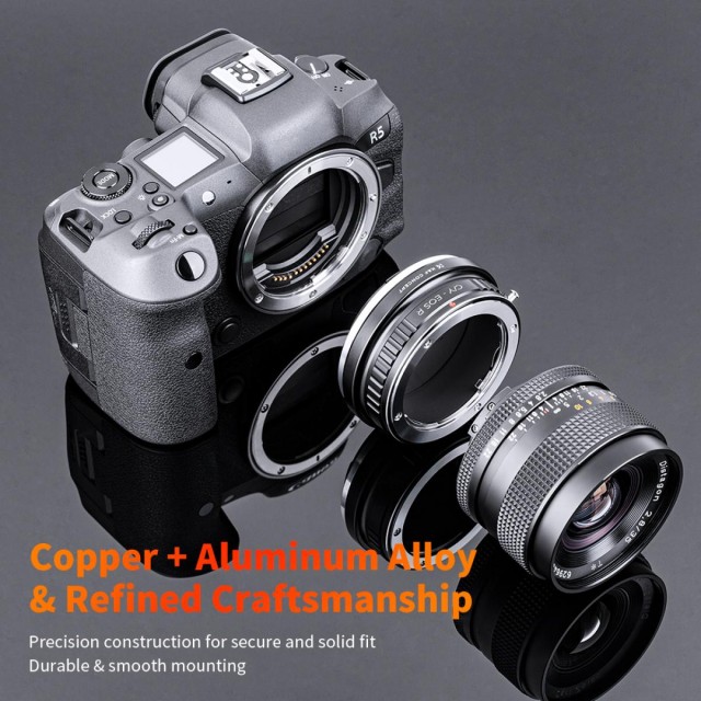 K&F adapter za objektive Contax Yashica na Canon EOS R omogućuje korištenje objektiva s Contax/Yashica montažom na Canon EOS R fotoaparatima bez zrcala, a odlikuje se izdržljivom konstrukcijom od mesinga i aluminija, preciznim ručnim upravljanjem i podrškom za beskonačno fokusiranje.