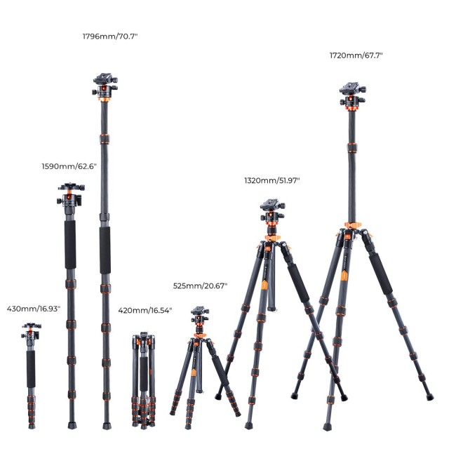 - * 【Praktičan i fleksibilan】D255C4+BH-28L tronožac od karbonskih vlakana ima cijev promjera 25 mm i noge s 5 dijelova sa spiralnim gumbom za zaključavanje, što vam omogućuje podešavanje radne visine od 52 cm do 173 cm; u sekundama; noge ovog tronožca od karbonskih vlakana mogu se podesiti u tri razine kuta otvaranja kako bi se stabilizirao na različitim terenima i razinama nagiba.